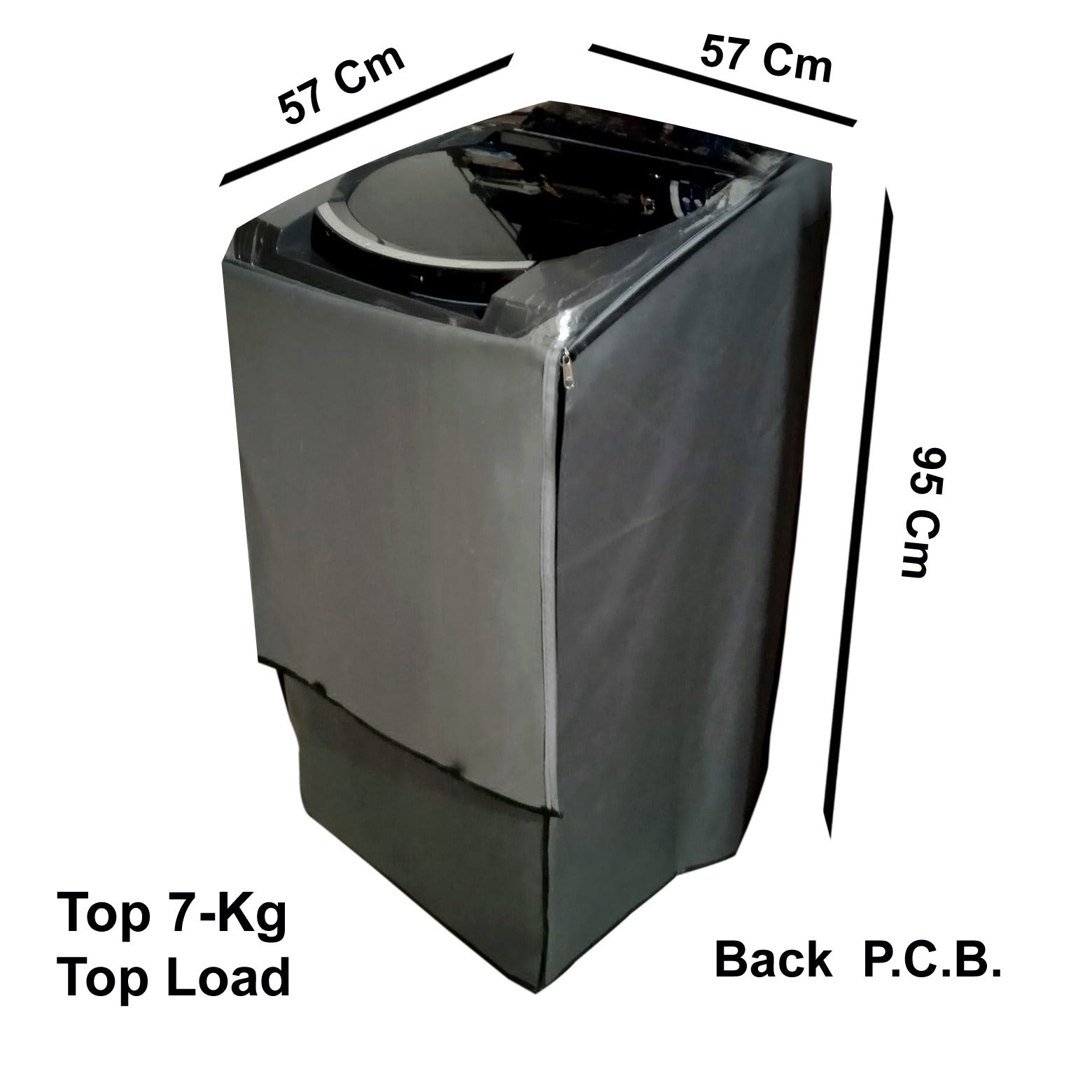 Grey Waterproof Washing Machine Cover for 7 Kg Top Load – Back P.C.B. – 57 x 57 x 95 cm (Dustproof & Protective, Black Border)